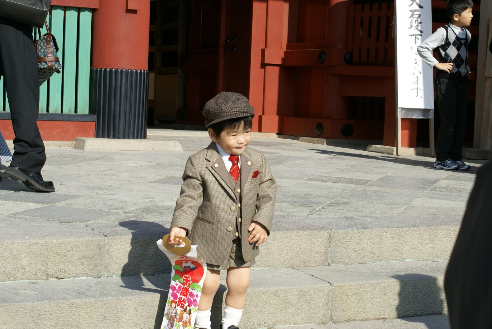 One of the best memories of the trip was that we went in the middle of 七五三 (shichi-go-san or 7-5-3) a coming-of –age celebration when boys of 3 and 5 and girls of 3 and 7 visit shrines with their families. Originating in the Heian Period, this was the time when boys, in the samurai class, were allowed to grow out their hair, and girls could begin to wear more complicated kimono. One of the biggest traditions is to eat 千歳飴 (chitoseame – which literally translates as thousand year candy) to ensure a long life. And, as Wikipedia usefully explains, the biggest difference between the samurai times and today’s celebrations, is that a “more modern practice is photography”.